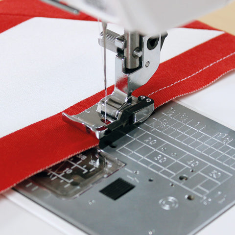Stopka do szycia ściegiem prostym dokładnie w okolicy 6 mm od krawędzi materiału, czy szwu. Będzie idealna przy szyciu patchworków (łączeniu elementów razem), przy pikowaniu, przy stebnowaniu i naszywaniu. Dzięki jej zastosowaniu ścieg jest tworzony z dużą precyzją, a występowanie problemów typu wciąganie materiału pod płytkę ściegową jest zredukowane do minimum. Dodatkowym udogodnieniem użycia tej stopki są poziome kreski, wskazujące dokładny moment, w którym należy wykonać obrót na igle przy stebnowaniu czy łączeniu elementów, aby po przejściu na kolejny bok znaleźć się w odpowiedniej pozycji od krawędzi. Stopka i prowadnik wykonane zostały z wysokiej jakości metalu, gwarantując użytkownikowi niezawodną pracę stopki przy wielu projektach szyciowych.
