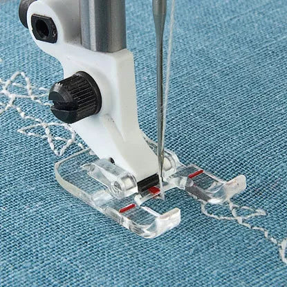 Przezroczysta stopka z otwartą płozą idealna do ściegów dekoracyjnych.