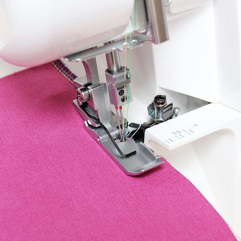 Stopka przyda się przy obrzucaniu i zszywaniu materiałów. Z jej pomocą można szyć dowolną liczbą nitek możliwą do uzyskania na konkretnym modelu owerloka (2-4 nitki). Dodatkowo, dla ułatwienia precyzyjnego szycia, na stopce zostały wytłoczone linie wskazujące pozycje wbicia się igieł.