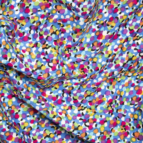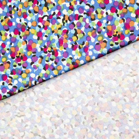 Tkanina bawełniana z elastanem o wyraźnej strukturze z kolorowym nadrukiem o składzie 96 % bawełna i 4% elastan. Tkanina o wyraźnej strukturze,rzyjemna w chwycie, stabilna. Nie prześwituje. Idealna propozycja na dopasowane sukienki, spódnice, spodnie, marynarki i żakiety.