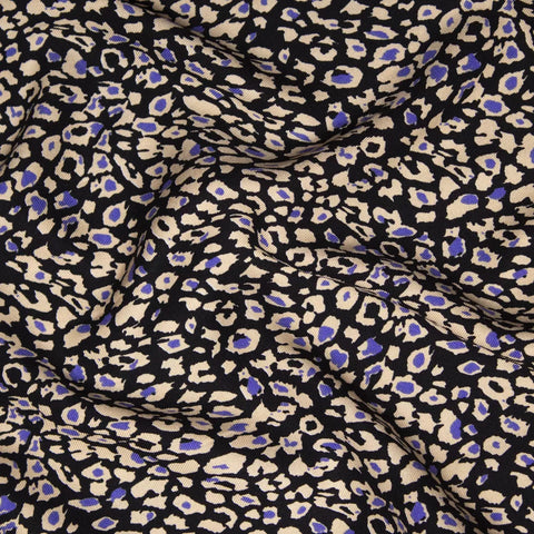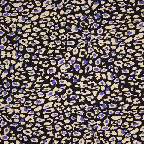 Tkanina wiskozowa cętki w odcieniach beżu i chabru na czerni