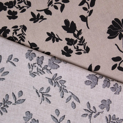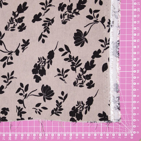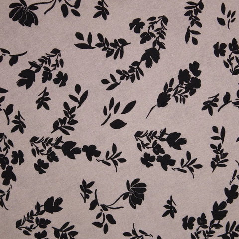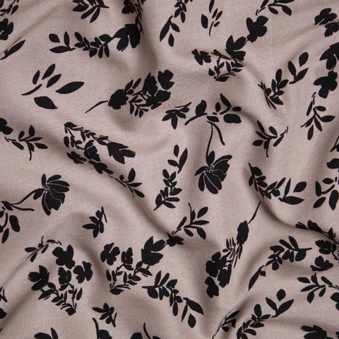 Tkanina wiskozowa czarny kwiatowy wzór na ciemnym beżu