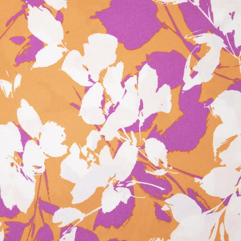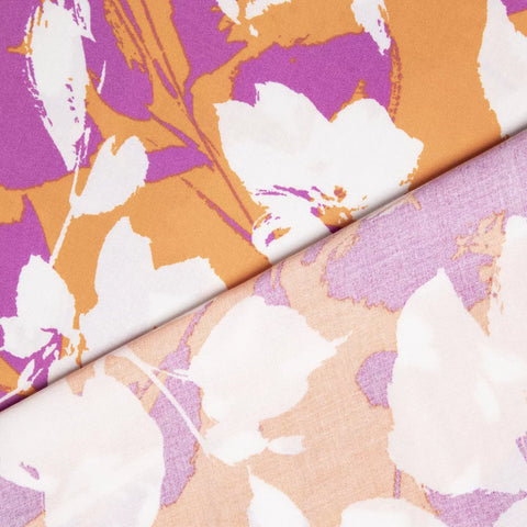 Tkanina wiskozowa duży kwiatowy wzór w kolorze bieli, pomarańczowym i fuksji