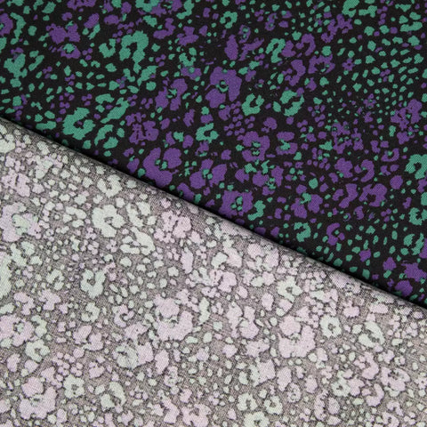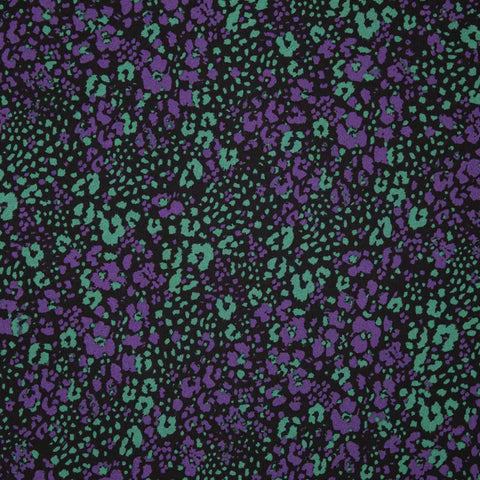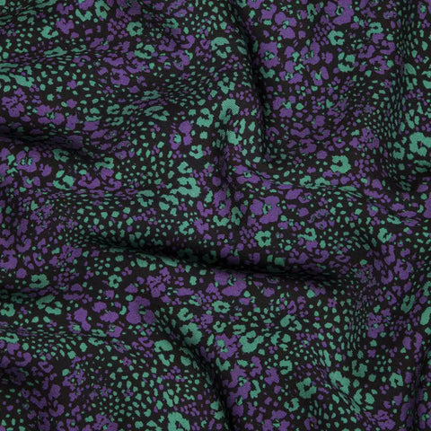 Tkanina wiskozowa fioletowe i zielone plamki na czerni