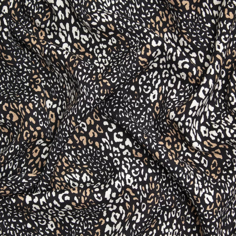 Tkanina wiskozowa krepowana drobny zwierzęcy wzór na czerni