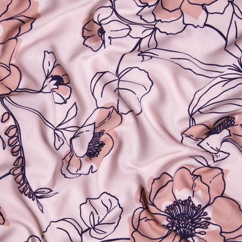 Tkanina wiskozowa pudrowy róż w duże malowane kwiaty