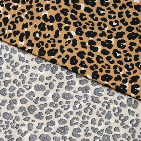 Tkanina wiskozowa w panterkę na karmelowym tle