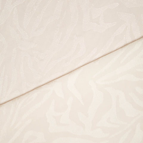 Tkanina wiskozowa o składzie 100% wiskoza w kolorze ecru ze strukturalnym wzorem w zebrę. Idealna na sukienkę, bluzkę, tunikę, koszulę, kombinezon, spódnicę z falbanami, spódnicę z koła, chusty i apaszki. Przewiewna tkanina o naturalnych właściwościach, idealna na wiosnę, lato, jesień. Przyjemna w chwycie, miękka, lejąca się, gładka. Nie prześwituje, nie wymaga podszewki, lekko się gniecie, z wyczuwalną delikatnie strukturą. Lekko prześwituje.