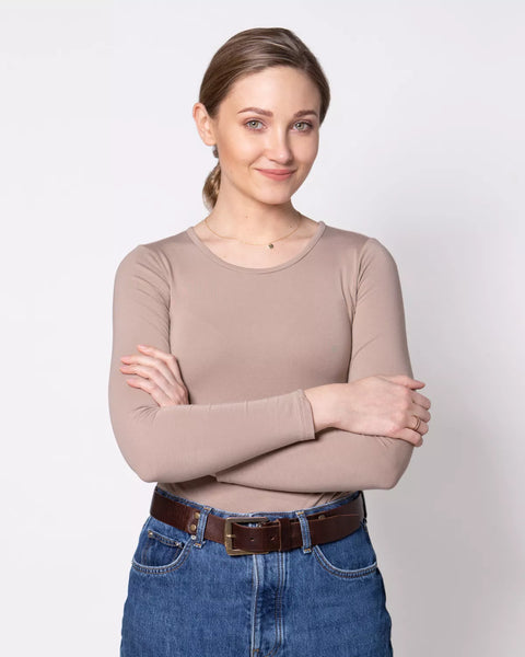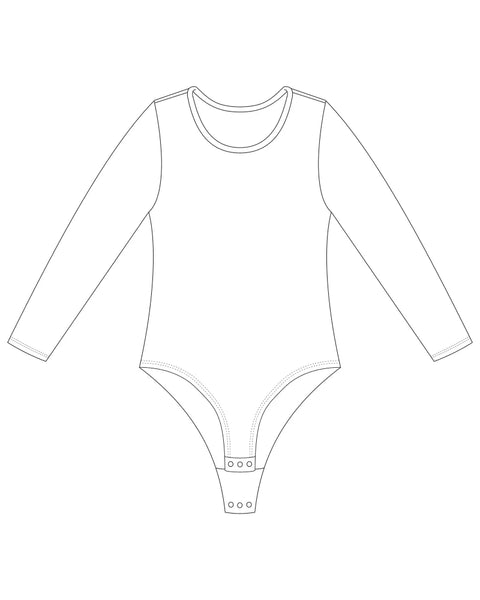 Body ma klasyczny, bardzo podstawowy i ponadczasowy krój - kszałt linii na pupie przypomina brazyliany, góra body została z kolei zaprojektowana w taki sposób by nie odsłaniać nadmiernie dekoltu, wycięcie na plecach jest płytkie, jak w klasycznym t-shircie lub longsleeve, zasłania zapięcie biustonosza i zakrywa całe plecy. Wykrój zawiera długi rękaw.