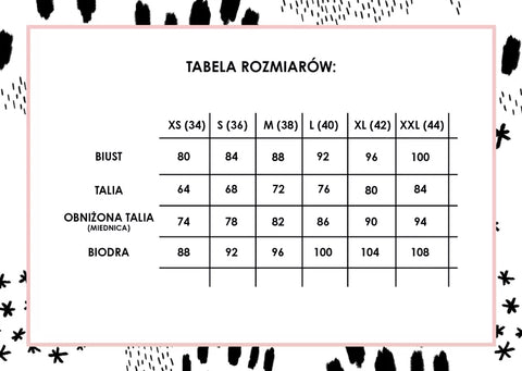 - wykrój wielorozmiarowy (wszystkie rozmiary naniesione na siebie) przygotowany do wydruku na A4 na drukarce domowej