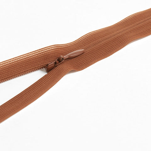 Zamek kryty nierozdzielczy, YKK, długość 22 cm, kolor rdzawy.