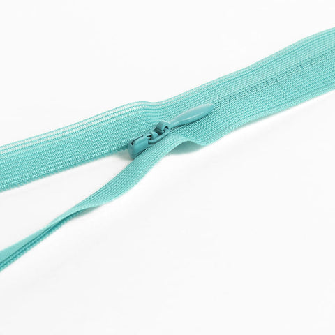 Zamek kryty nierozdzielczy, YKK, długość 22 cm, kolor turkusowo-zielony.