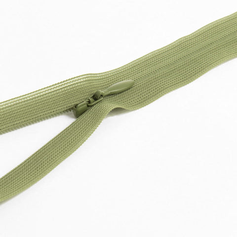 Zamek kryty nierozdzielczy, YKK, długość 55 cm, kolor oliwkowy.