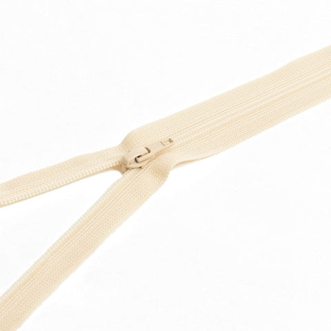 Zamek spiralny płaski, nierozdzielczy, YKK, długość 16 cm, kolor jasny, ciepły beż.