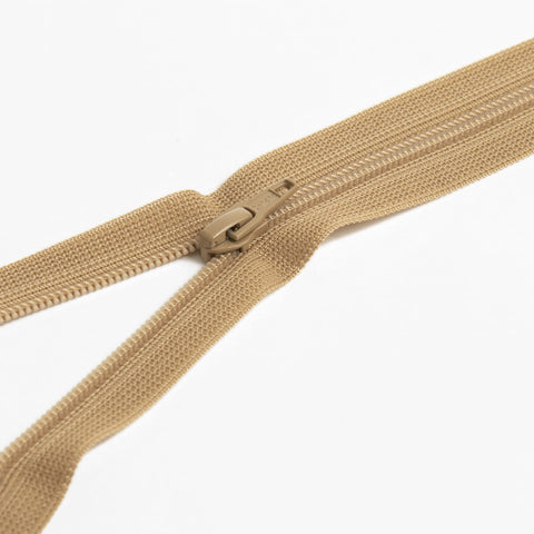 Zamek spiralny płaski, nierozdzielczy, YKK, długość 16 cm, kolor latte.