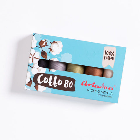 Zestaw 5 nici bawełnianych do szycia Cotto 80 o długości nawoju 500 m.