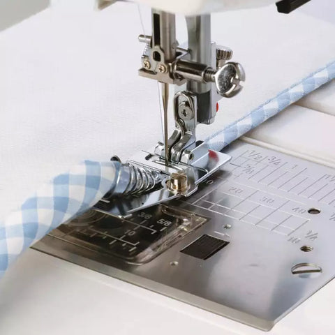 Lamownik wszyje lamówkę zaprasowaną i niezaprasowaną. Szerokość lamówki niezaprasowanej - 25mm (po uszyciu 5,5mm), zaprasowanej - 10-14mm (po uszyciu 5,5mm).