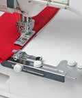 Specjalna konstrukcja zwijacza umożliwia równe podwijanie krawędzi materiału. Dzięki prowadnikowi Twoja odzież zawsze będzie profesjonalnie wykończona. Prowadnik umożliwia regulację szerokości podłożenia materiału w zakresie od 1 do 4 cm. Pozycję prowadnika względem igły również można regulować, dzięki czemu masz pełną kontrolę nad efektem końcowym podwijania.